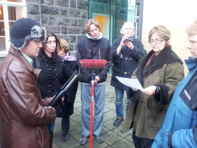 Stjórn HH hafði við afhendinguna meðferðis strákúst sem er orðin að táknmynd fyrir baráttu samtakanna gegn verðtryggingunni og málaferlin gegn Íbúðalánasjóði vegna verðtryggðs fasteignaláns, sem nú standa yfir. Stefnendur í málinu stilltu sér einmitt upp með sams konar kúst á myndinni sem fylgdi viðtali því er birtist í Fréttatímanum fyrir helgi, og lögðu þarmeð grunninn að strákústinum sem táknmynd. Þeir fjölmörgu sem sóttur borgarafundinn í Háskólabíó síðastliðinn miðvikudag, svo og allir þeir sem styðja baráttuna gegn verðtryggingunni eru hvattir til að stilla upp strákústinum fyrir framan heimili sín og sýna þannig samstöðu í verki.