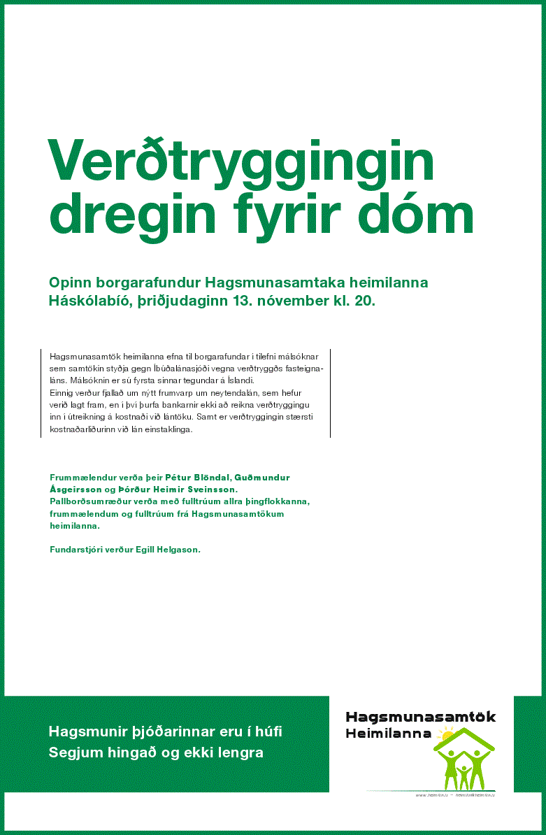 Að lokum vil ég þakka þeim mikla fjölda einstaklinga, félaga of fyrirtækja sem hafa lagt fram fé til þessarar baráttu. Án ykkar framlaga væri ekkert að gerast. Minni á heimasíðuna www.heimilin.is.